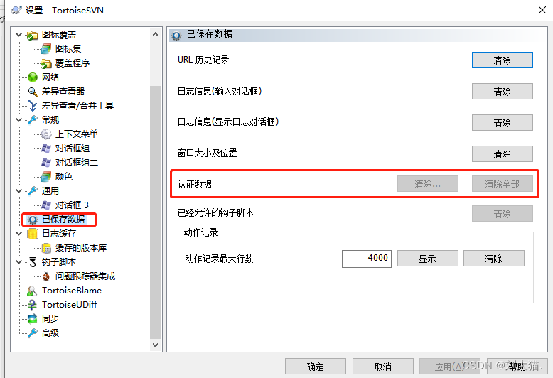 2,找到Saved Data栏,右侧Authentication data项点击清除按钮clear