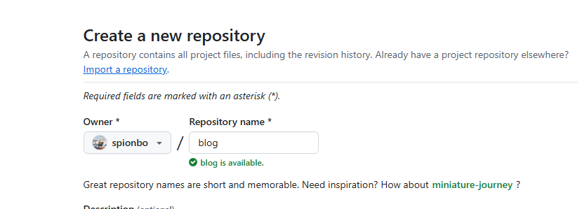 这里说明一下,如果想要自己的域名,最好是仓库名叫 <你的用户名>.github.io,比如我的:spionbo.github.io,因为我的用户名是 spionbo