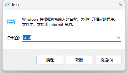 同时按 win+R键,在弹出的运行对话框中输入cmd,打开Windows的命令行: