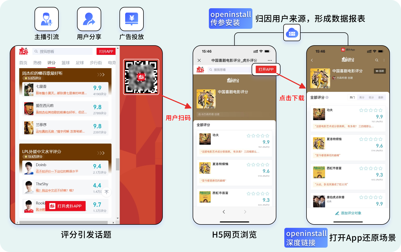 更进一步:结合openinstall传参安装能力,转发分享链接和主播合作链接中嵌入特定参数,就能追踪用户安装来源,形成多渠道数据报表,分析各渠道引流表现。