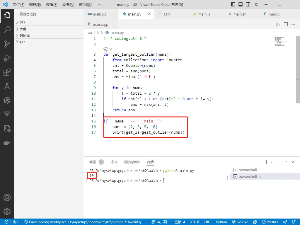 func getLargestOutlier(nums []int)int {