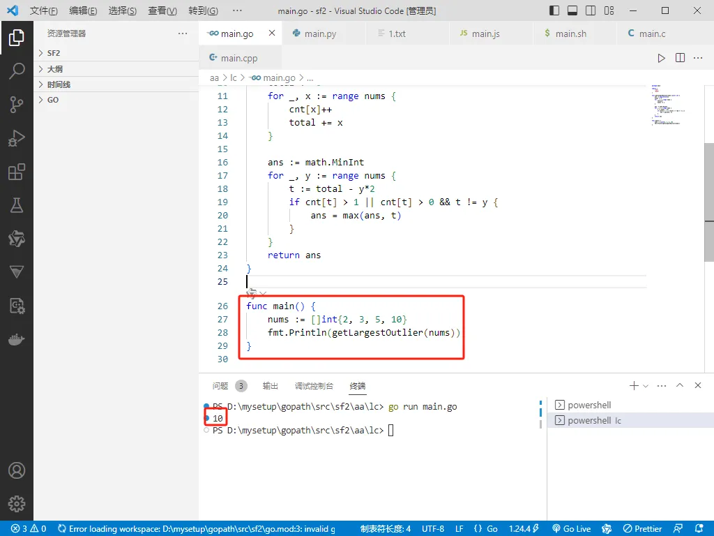 fmt.Println(getLargestOutlier(nums))