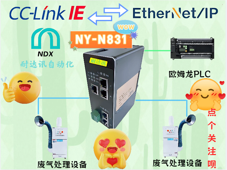 在工业自动化领域,CC-Link IE以其高速、大容量特点在日系设备中广受欢迎,而EtherNet/IP则在欧美系设备中占据重要地位。废气处理系统往往既有采用CC-Link IE的监测单元,又有需要接入EtherNet/IP网络的中央控制设备。如果不能打通两者,数据就成了孤岛,系统集成和运维难度可想而知。