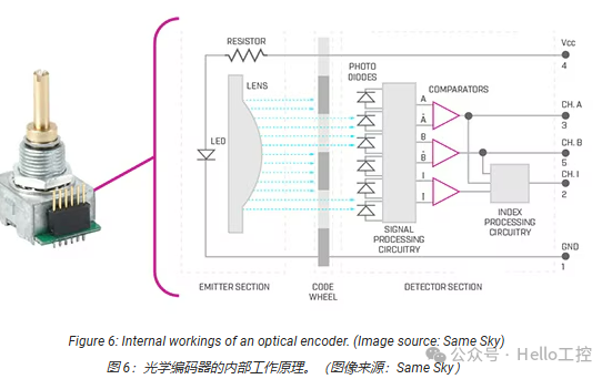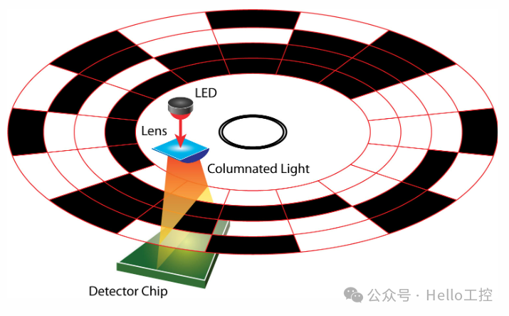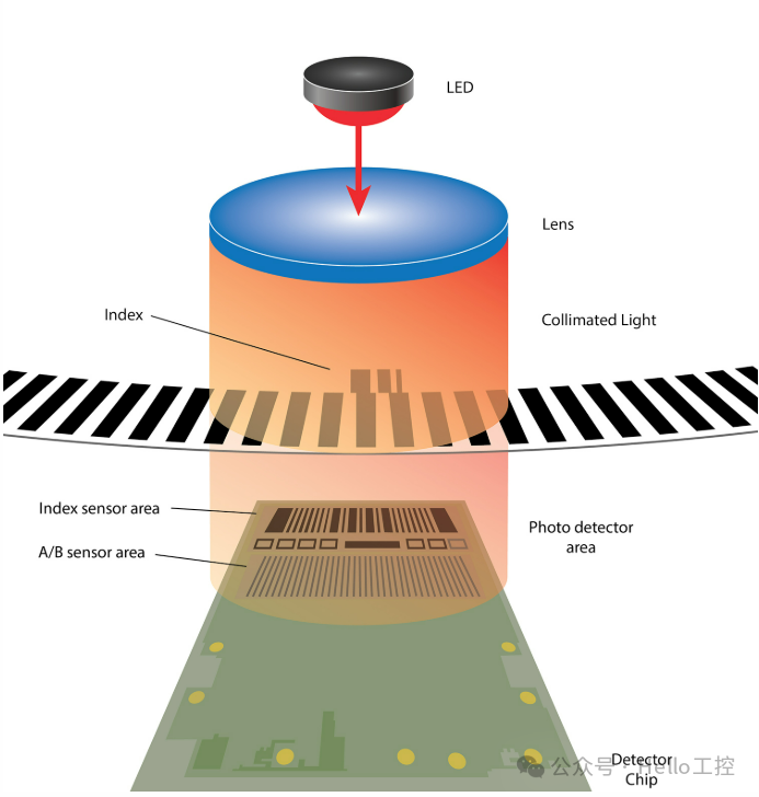 主要包含一个 LED、光电检测芯片和一个编码盘以报告轴的位置。