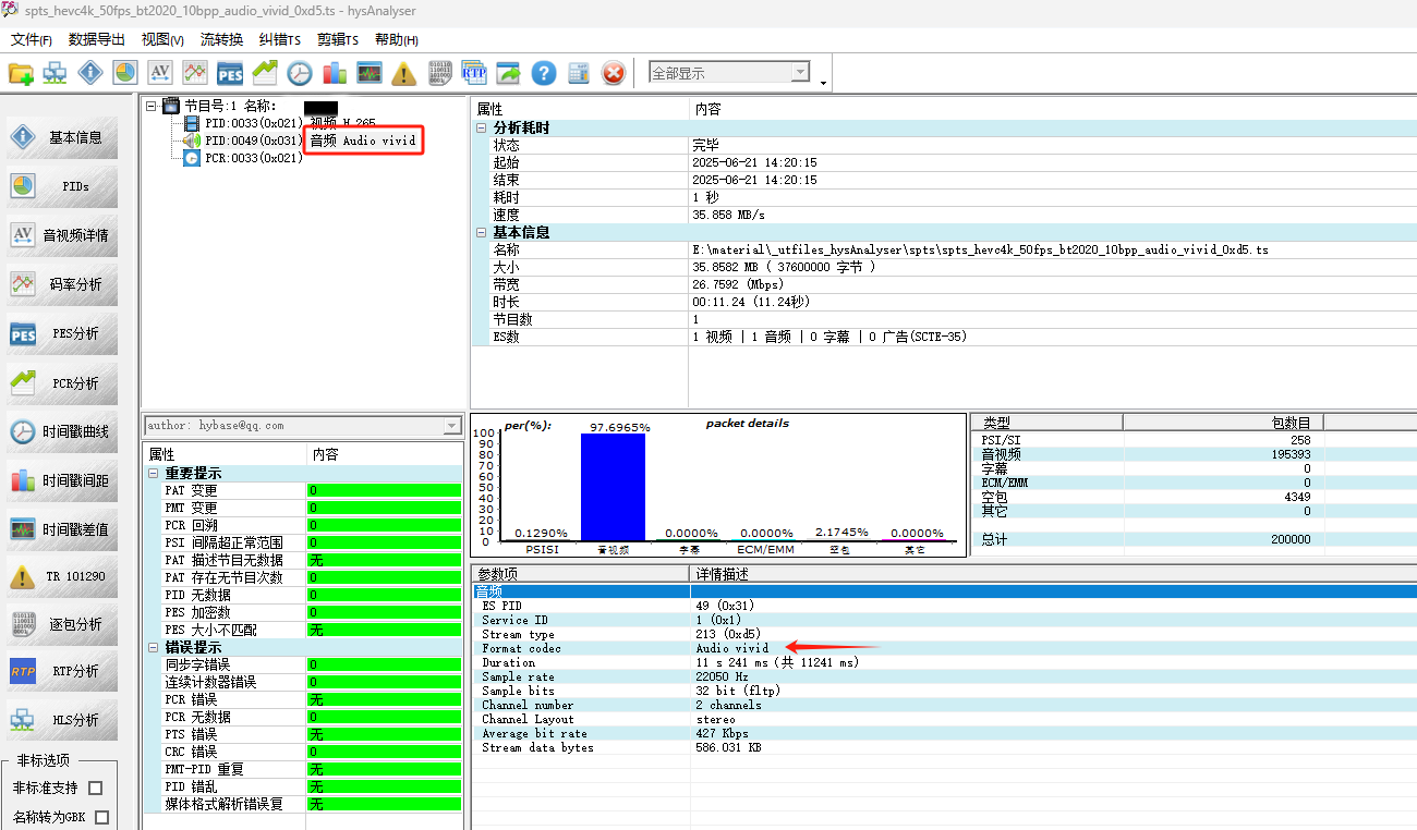hysAnalyser 是一款专业 MPEG-TS 数据分析工具,定位于