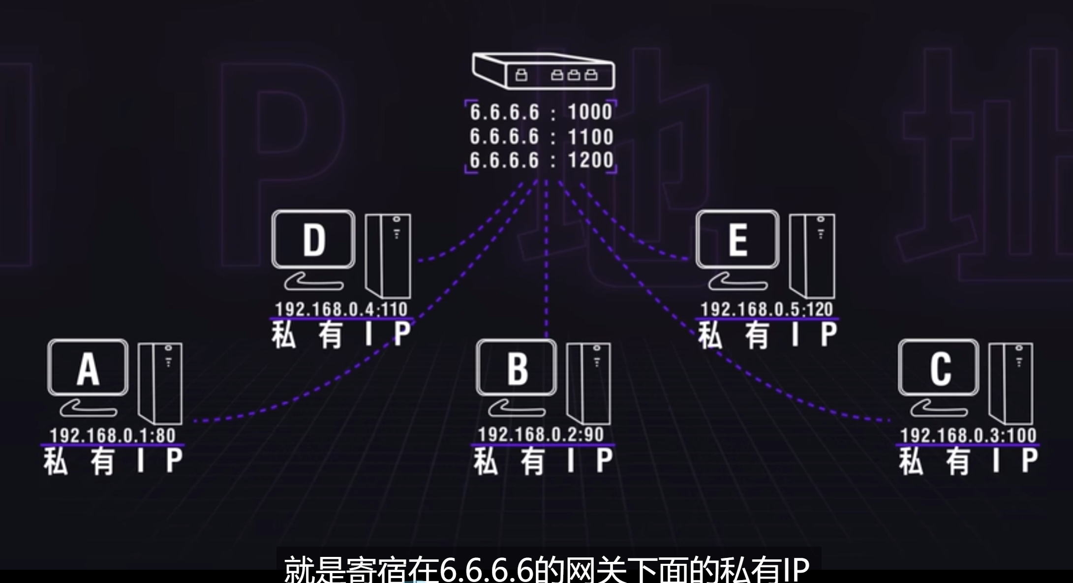 像之前所述的,网关下面附属的各个设备的虚拟地址就是寄宿在网关下面的私有IP,网关所拥有的可以在广域网上进行交换数据的就是公网IP(能直接拿来访问的地址就是公网IP,唯一)