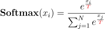 温度 (t) 参数是对调节输入的Softmax激活函数的一个简单修改: