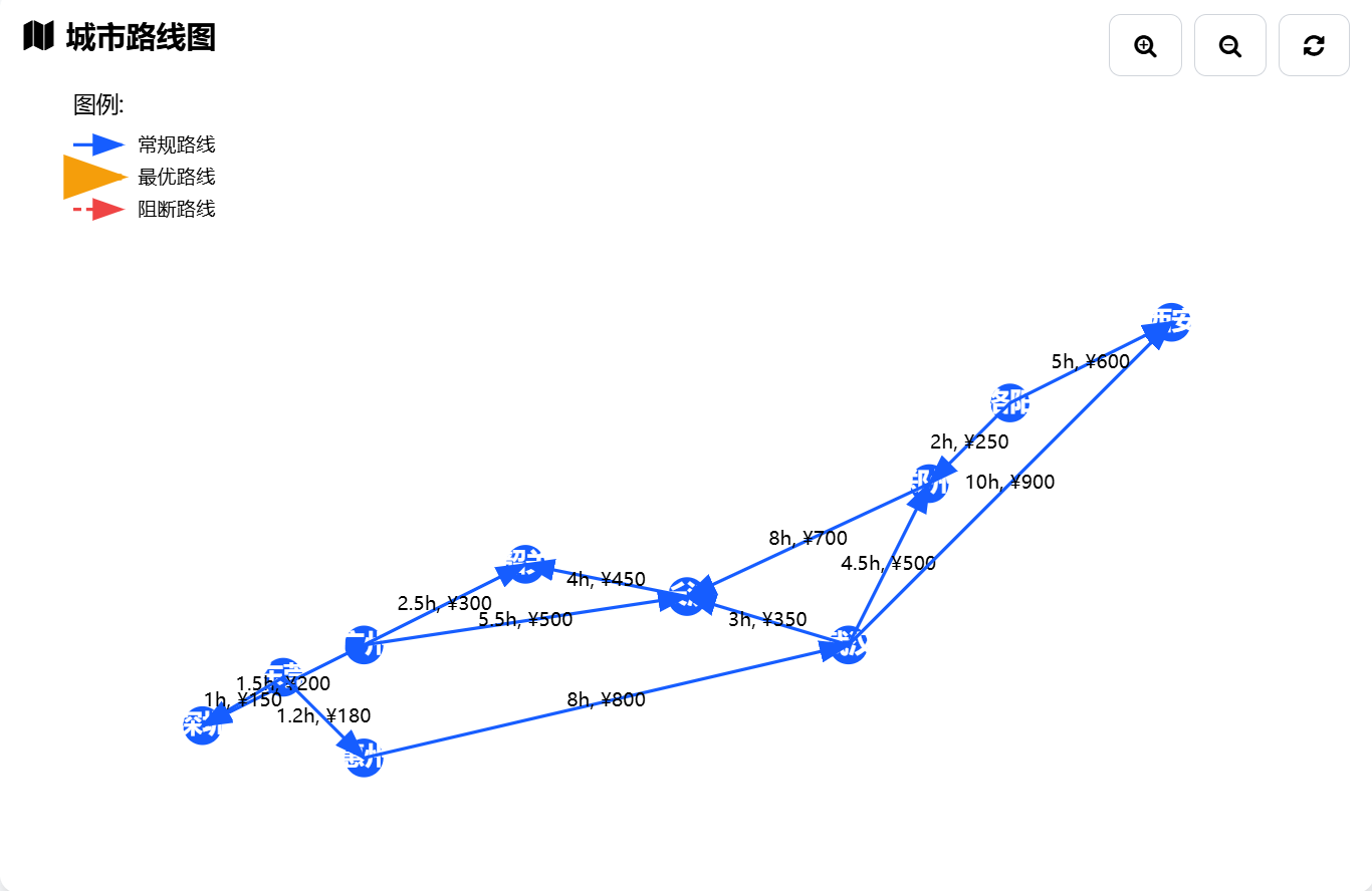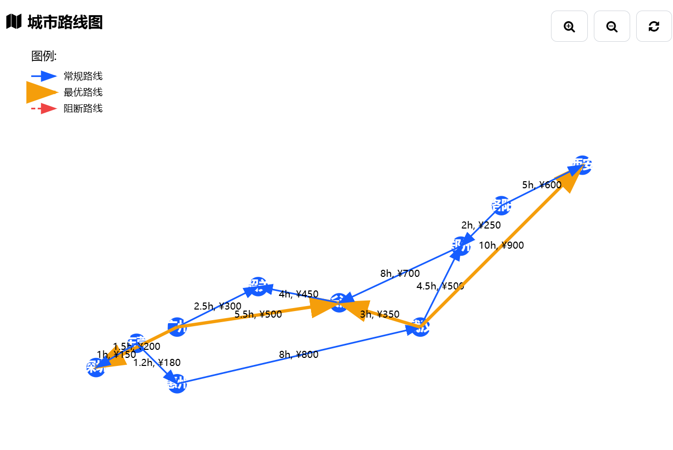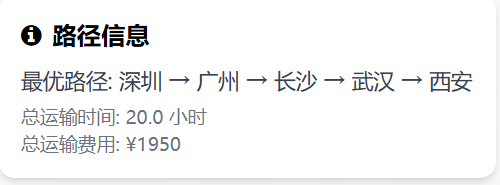 您看这城市数据里的「深圳→广州→韶关→长沙→武汉→洛阳→西安」路线,放古代得靠驿站换马接力,现在用 Dijkstra 算法一算,总时间、总费用一目了然。要是李善德有这工具,怕是能在长安城开连锁荔枝铺,顺便给杨贵妃搞个「荔枝订阅制」,妥妥的大唐商业鬼才!