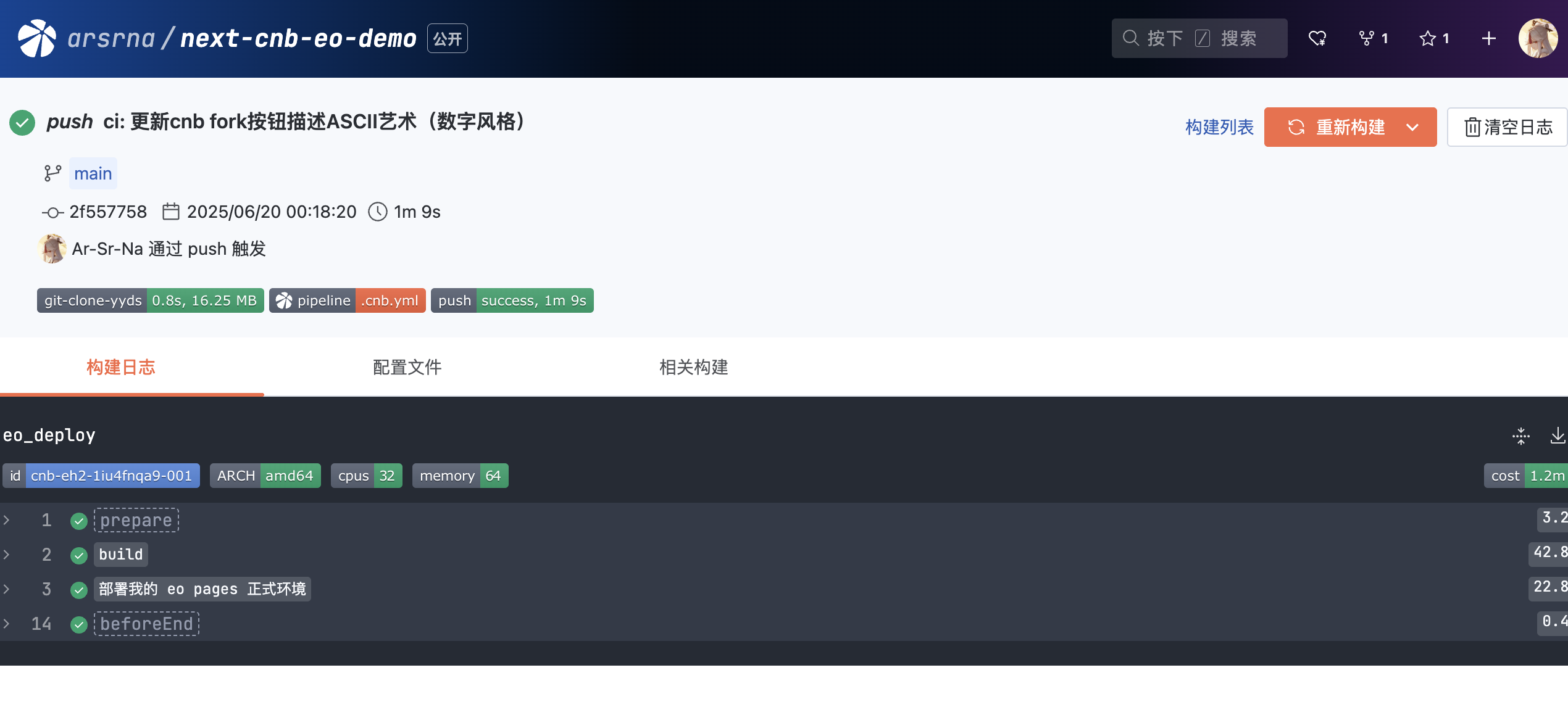 (下文会提到)来进行仓库迁移。也可以直接使用我们的demo:https://cnb.cool/arsrna/next-cnb-eo-demo