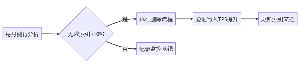 1. 标记候选 | 通过前述方法列出待删索引清单 | 记录索引名及所属表 |