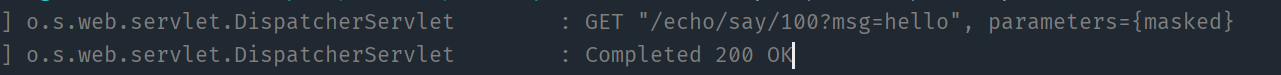 你会发现有请求信息输出。但细心的你可能会发现 parameters={masked},这是因为 DispatcherServlet 默认会将请求参数进行掩码处理,以保护敏感信息不被泄露。不过,我们可以通过以下配置让请求参数显示出来: