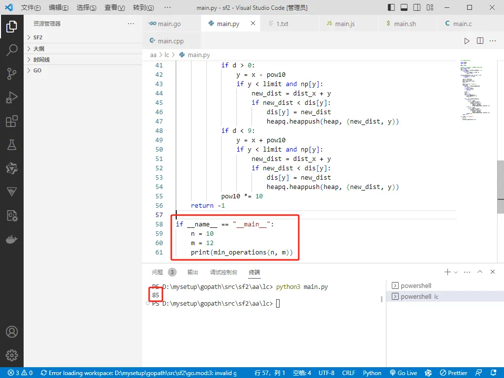 2025-06-24:使两个整数相等的数位操作。用go语言,给定两个整数 n 和 m,它们的位数相同。 你可以对 n 执行任意次数的操作,每次操作都是以下两种之一: