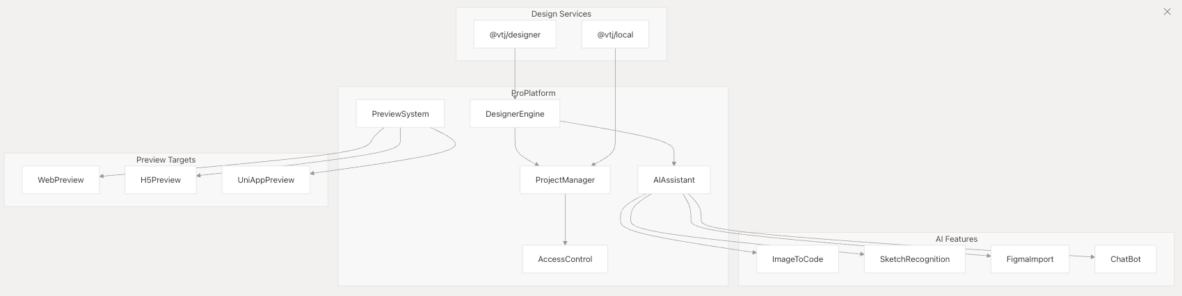 平台实施可以单独使用,也可以一起使用,具体取决于您的项目要求。@vtj/pro 环境可以面向 Web 和 uni 平台进行预览和测试。