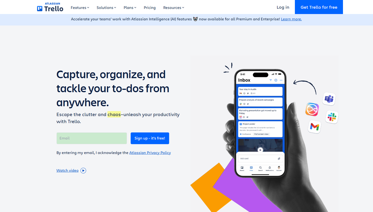 推荐理由:Trello 特别适合小团队或自由职业者,用最低的学习成本换取最直观的任务管理体验。尤其是在流程相对固定的场景中,AI自动化能显著节省重复操作的时间。