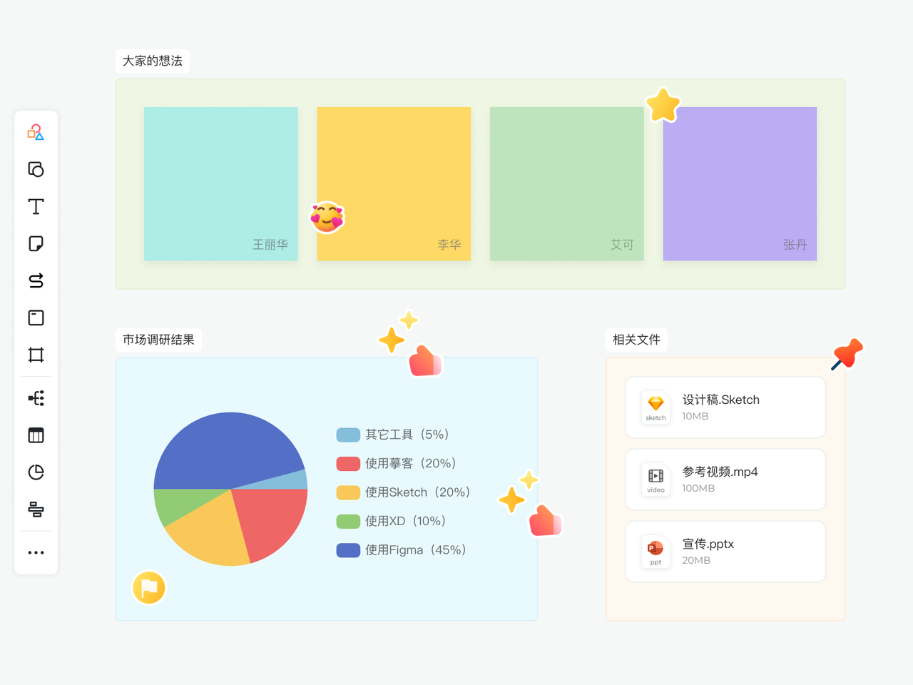 2)实时协作:多位成员可同时编辑同一块看板,实时同步更新,避免版本混乱。