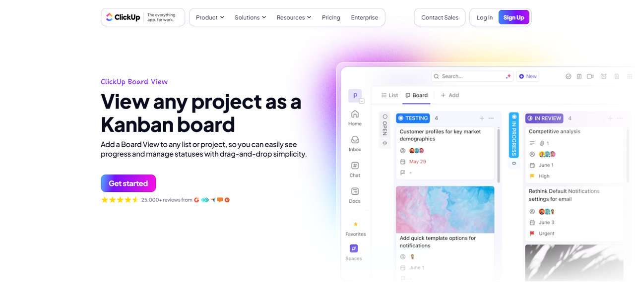 推荐理由:ClickUp 的AI看板更像一个“项目大脑”,能主动识别项目问题并提供解决方案,对中大型团队、产品和技术类项目尤其适用。