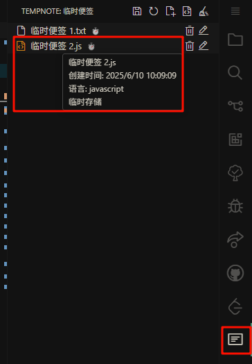 Temp Note: 一个轻量级的 VS Code 插件,提供快速创建临时文件的功能,用于记录临时想法、测试代码片段、粘贴临时数据等。支持临时模式和持久化模式。