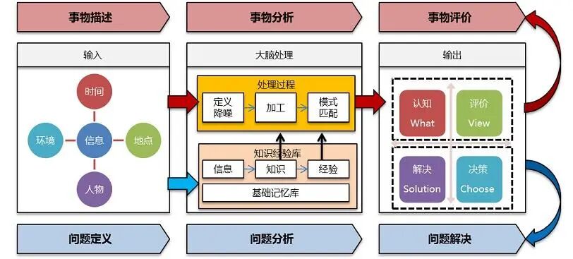 思维的过程核心是问题定义分析和解决的过程,而问题定义重点是对输入信息进行加工处理,这里面涉及到对输入信息进行降噪,进行分解,排序等各种加工,加工的目的仍然是为了问题分析和解决服务。