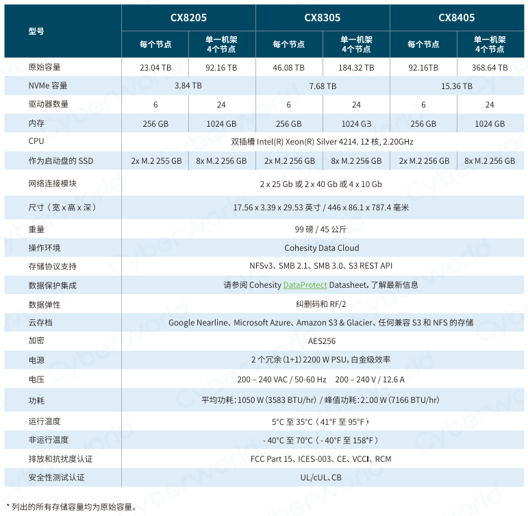 Cohesity CX8000 系列是超融合全快閃儲存設備,每台設備支援 23TB 到 184TB。它非常適合快速備份、開發與測試(數 據庫及虛擬機器)、繁重的文件與對象工作負載、苛刻的應用生態系統要求。CX8000增強了當前的C4000和C6000系列 平台,滿足了以數據服務為中心的工作負載的SLA。所有CX8000系列型號可以提高 Cohesity Marketplace 應用生 態系統中應用程式的效能。Cohesity Data Cloud 可在所有CX8000系列型號上運行,提供無限的可擴展性、單一的使用者介面UI、領先的數據縮減技術、基於軟體的加密、企業搜尋以及強大的網路安全。