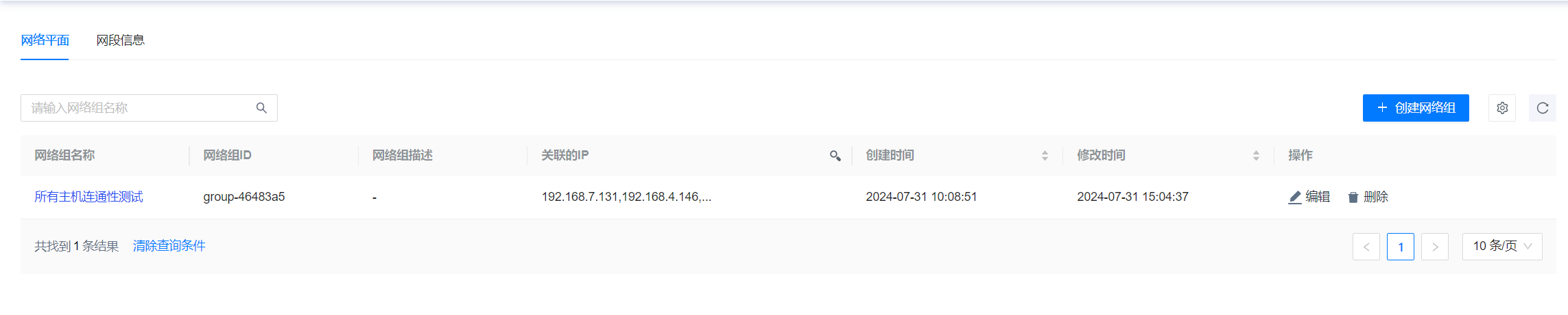 网络平面提供了创建并管理网络组的功能,用户可以借助网络平面来进行IP之间的连通性测试。