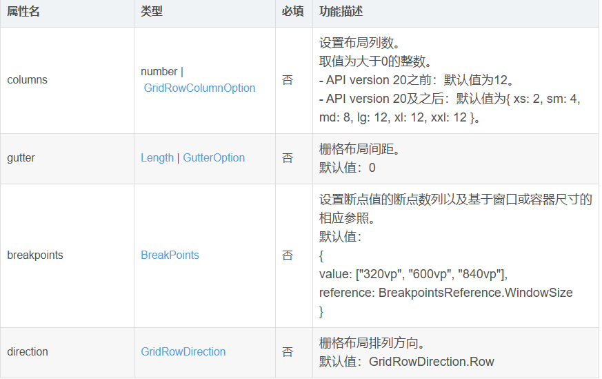 - API version 20及之后:默认值为{ xs: 2, sm: 4, md: 8, lg: 12, xl: 12, xxl: 12 }。