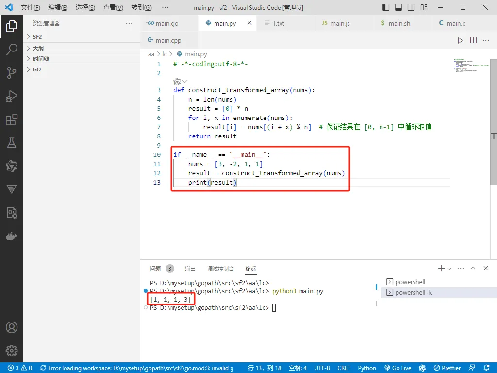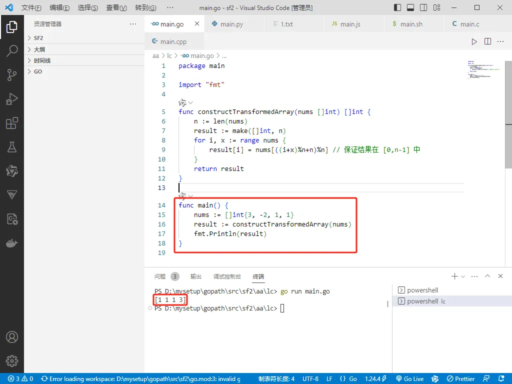 2025-06-26:转换数组。用go语言,给你一个整数数组 nums,它被视作一个循环数组。请你构建一个同样大小的新数组 result,规则如下: