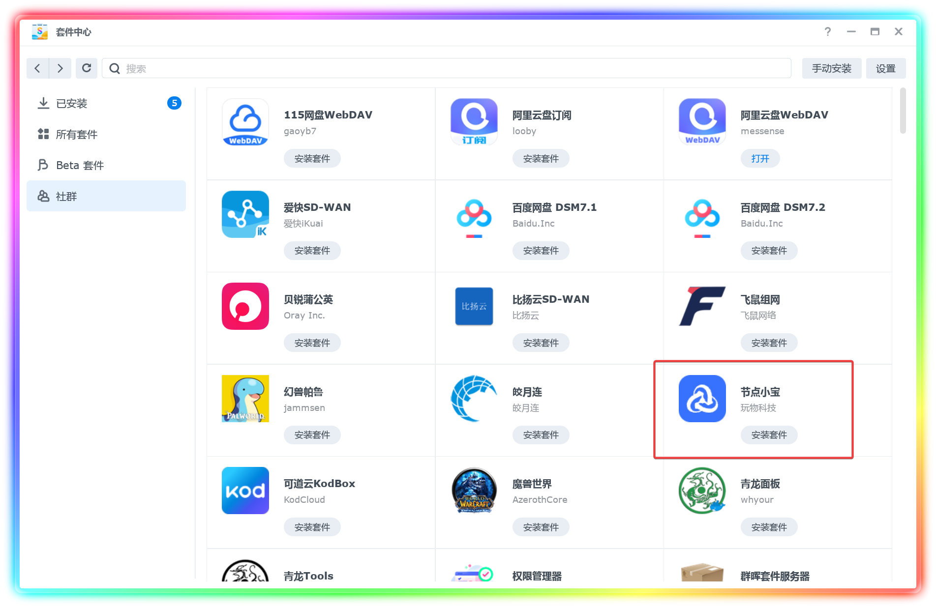 ▼节点小宝几乎能在所有平台进行安装,包括主流的 Windows、Mac、安卓、以及主流 NAS 平台以及 docker 应用