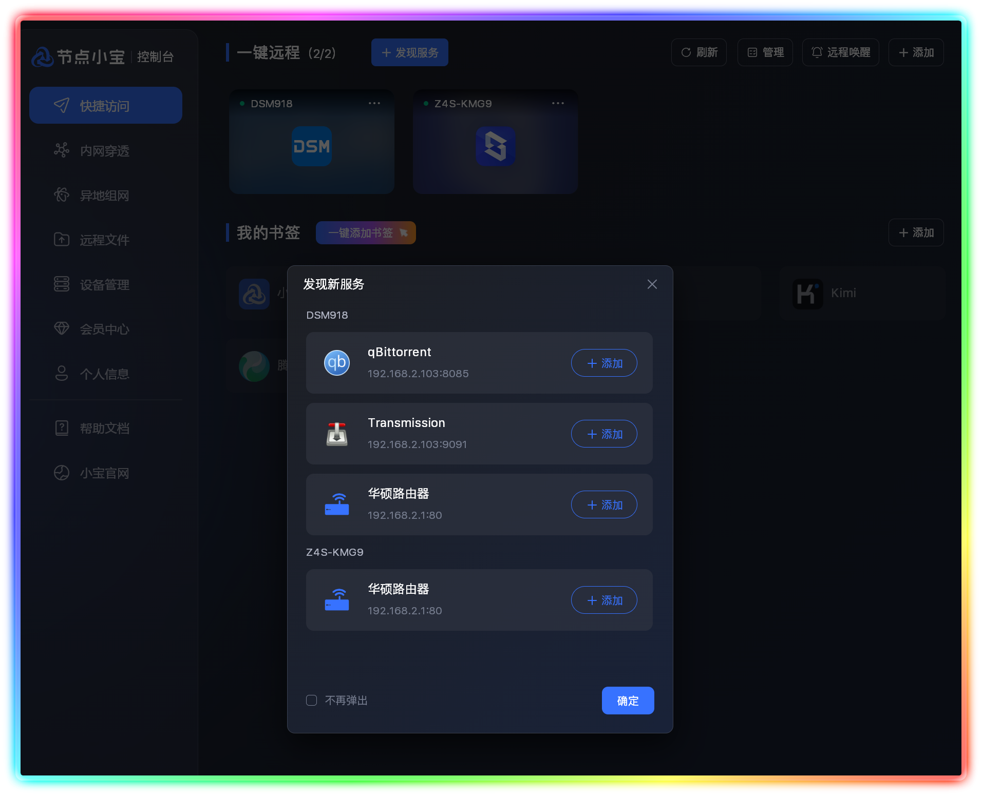 ▼【快捷访问】本质就是导航工具栏,像我们玩 NAS 通常都会部署 Heimdall 、Van-Nav 等应用,访问各种应用会更加方便。