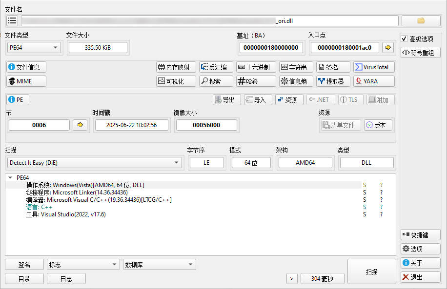 使用visual studio编译后,DLL容易被分析,主要体现在以下几点,