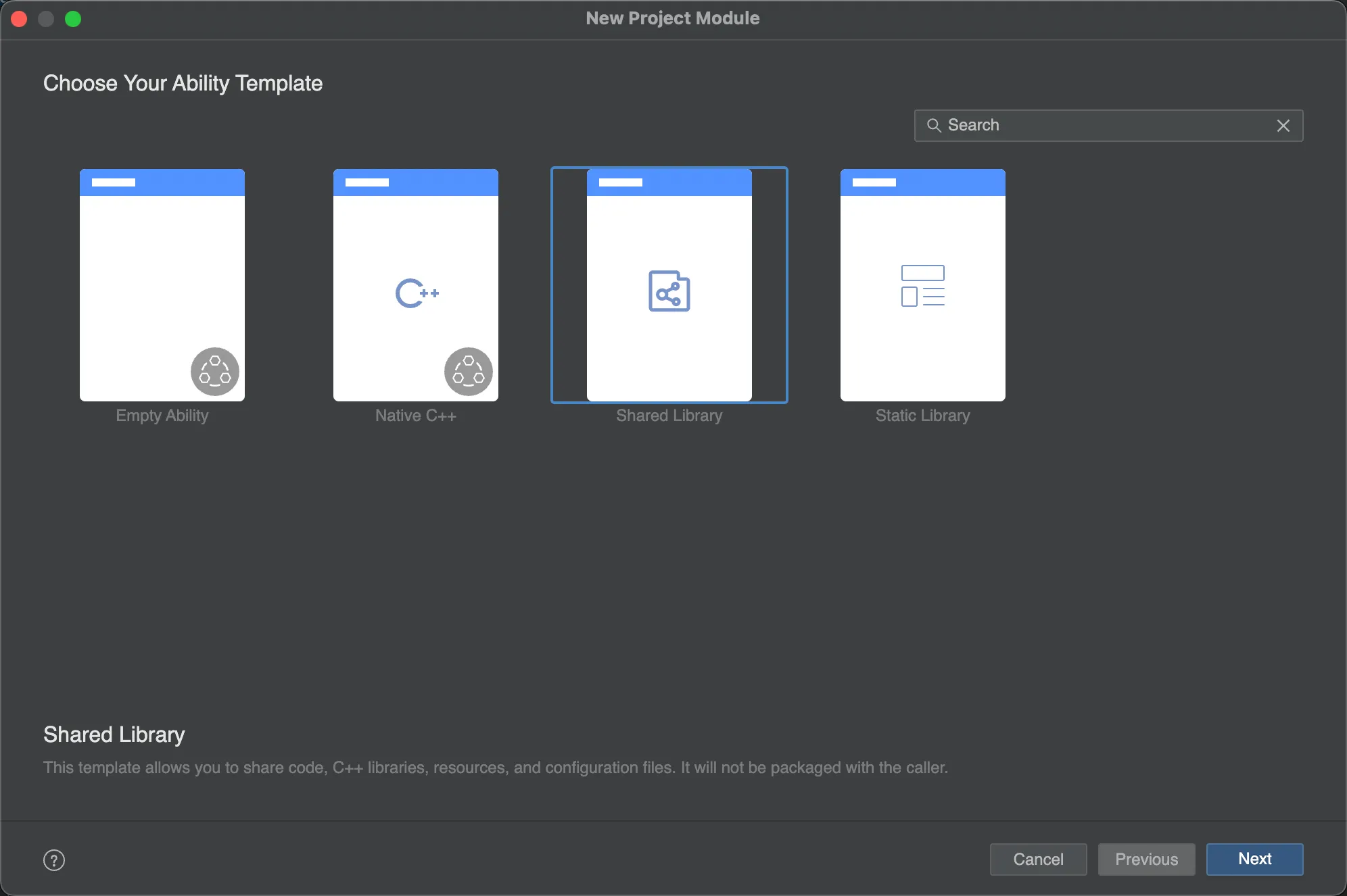 选择动态共享包Shared Library。