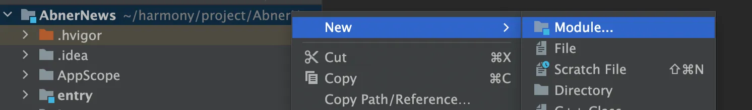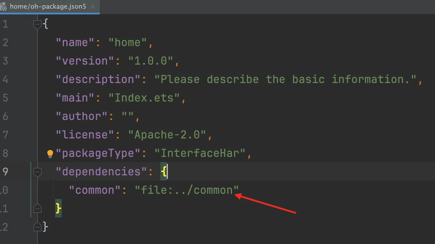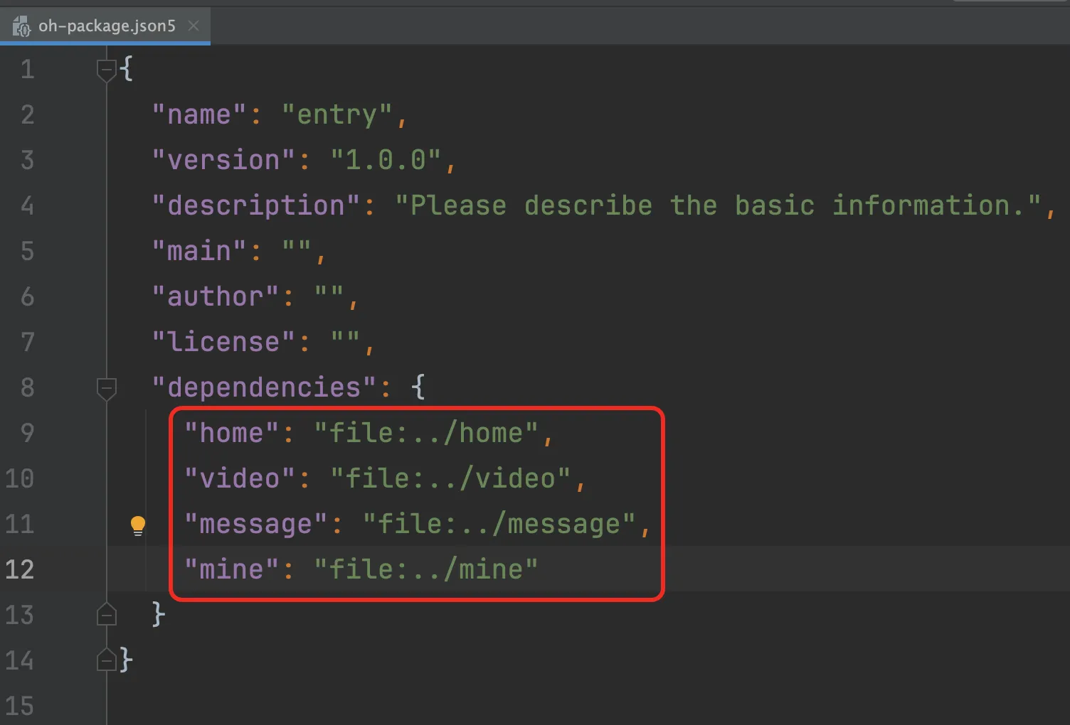 模块创建完成之后,我们就可以在主模块entry的oh-package.json5中进行依赖: