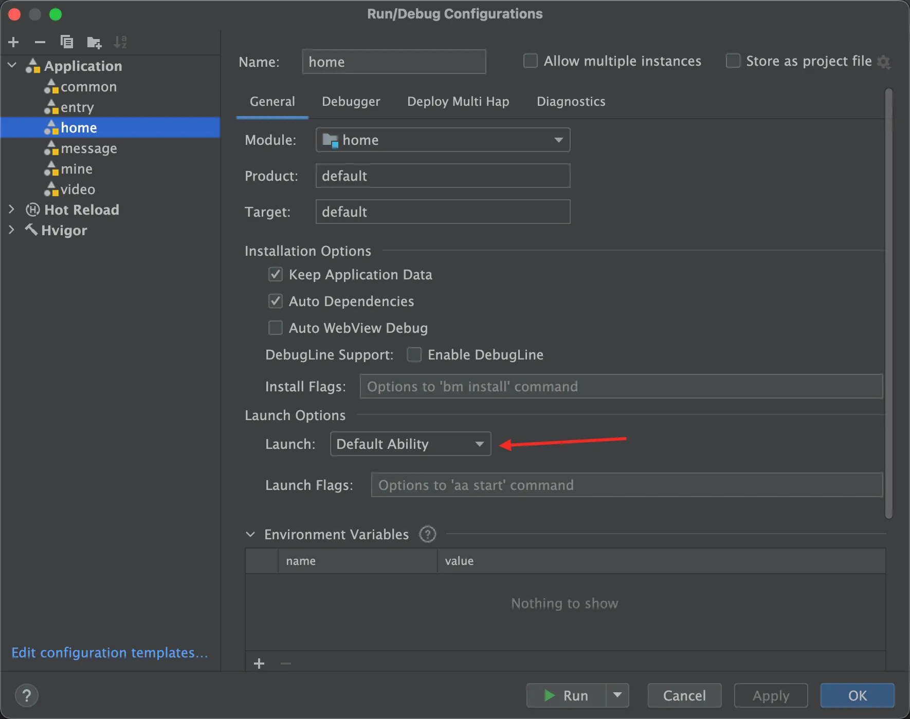 让一个普通模块实现运行,我们只需要按照以上的差异进行修改,便可以达到组件的单独运行效果,更改完有两点需要注意,第一点,清除缓存,清除之前的配置信息,第二点,设置启动Ability。