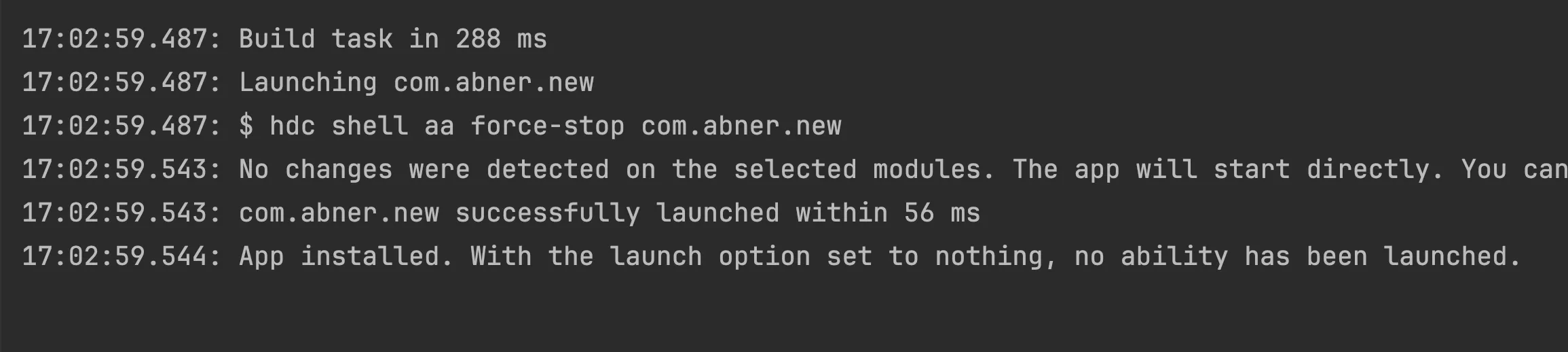 如果你运行正常,但是设备上没有打开默认的页面,如下提示,那是因为你的模块还未有选择默认的launch。