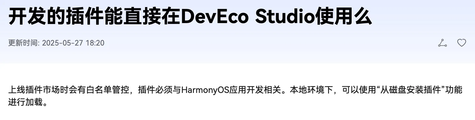 记得之前在json转对象一文中,有过简要说明,就是目前的DevEco Studio有自己的白名单控制,jetbrains插件市场中插件,在DevEco Studio是无法被搜索到的,所以,这里只能提供本地的安装方式。