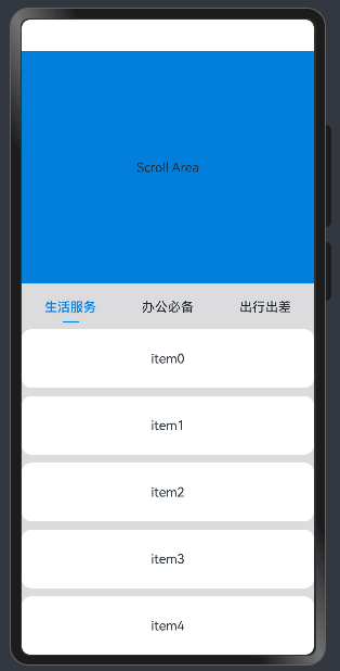 1.滑动事件处理,Scroll嵌套List,向上滑动优先父容器滑动,向下滑动优先List滑动,滑动事件处理在绑定半模态页面那篇有介绍 2.Tabs吸顶,使用Column包裹Tabs+List,高度设置为屏幕高度,向上滑动时,Tabs就固定到顶部 3.Tabs和List关联滑动,需要监听Tabs的onChange事件,获取到点击Tab时的回调去控制List的滑动,监听List的onScrollIndex事件,获取到当前最上面的item的索引,根据业务需求去切换到指定的Tab