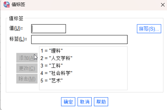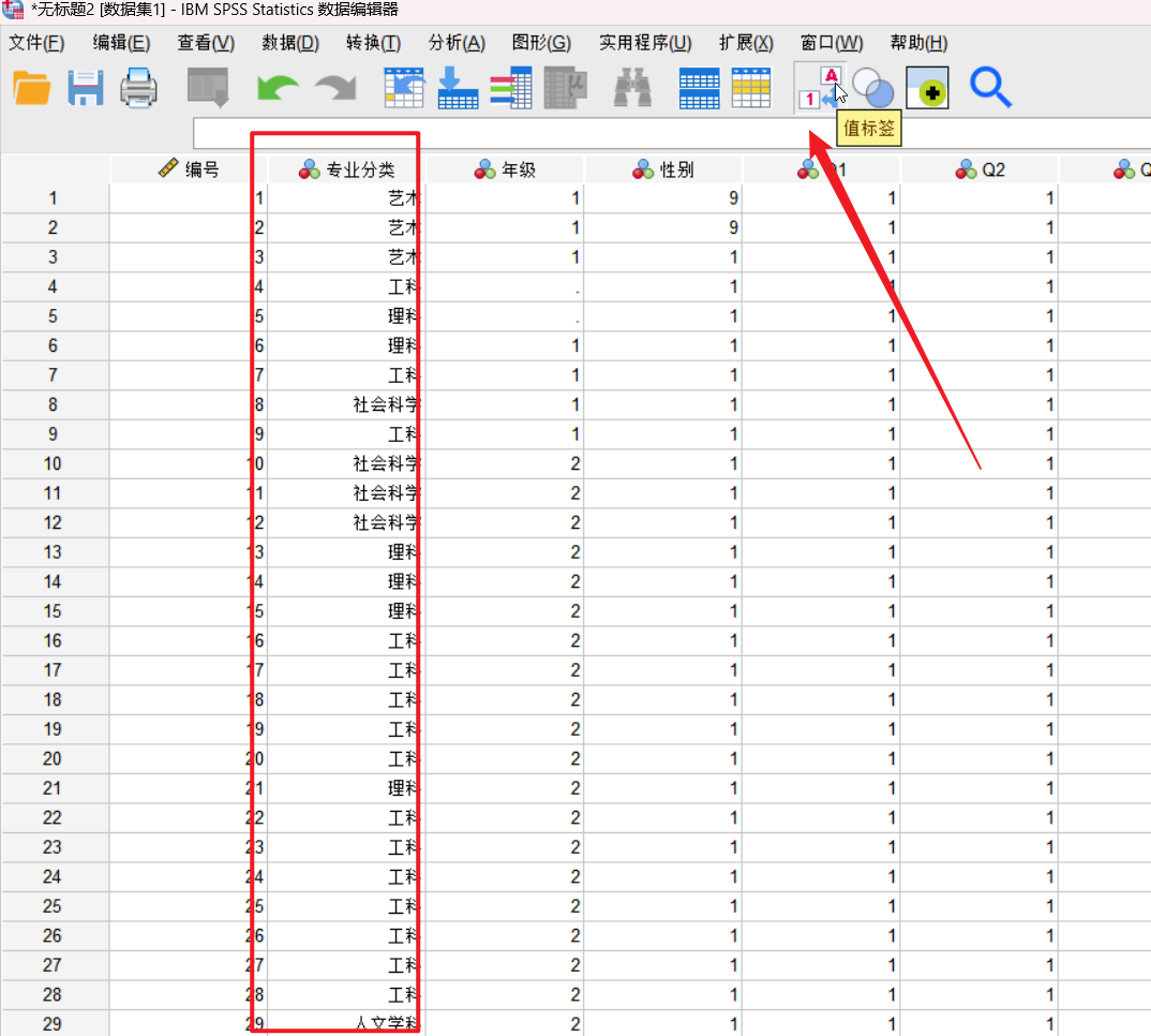 点击这个专业分类的值对应的三个点之后,我们就可以进行下面的这个操作了,对于这个里面的不同的数字代表的类型的含义进行标签的操作: