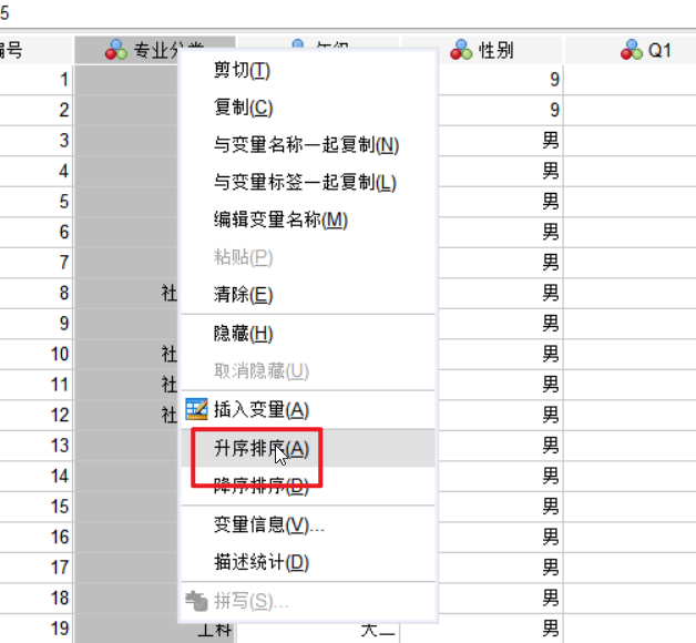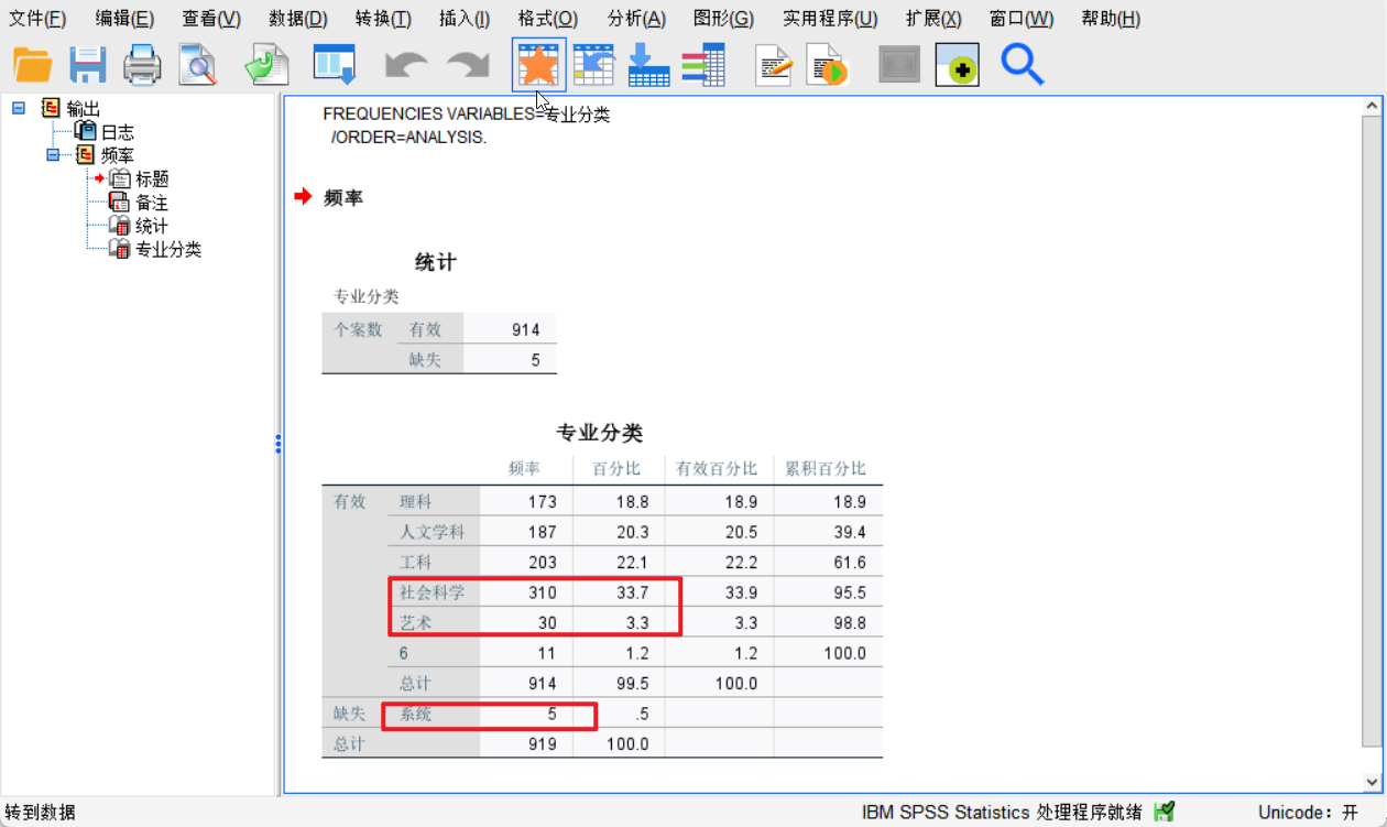 我们可以使用这个里面的描述性统计分析,点击频率进行分类: