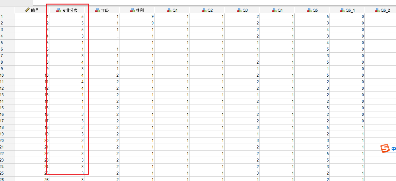 下面的这个是专业的分类,其中这个12345分别代表的就是不同类型的这个专业的分类,我们需要进行打标签的操作;