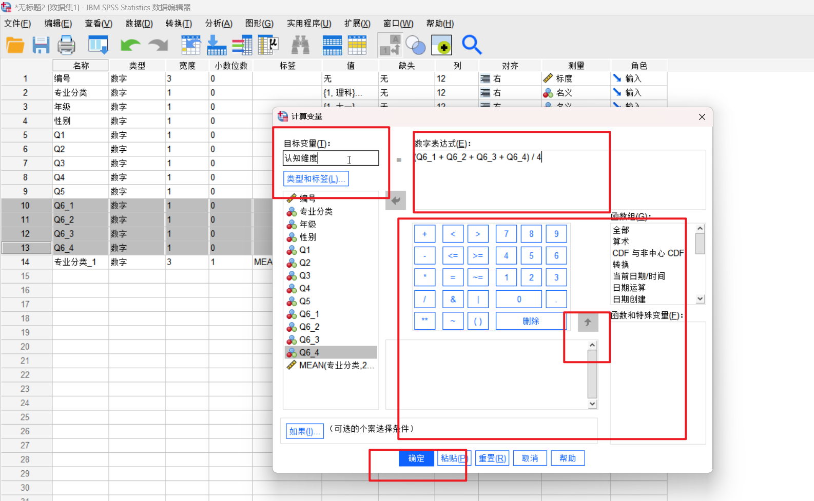 计算我们的四个评价的平均值作为我们的这个新的变量,名字叫做认知维度,其实这个在我们的日常生活里面还是非常的常见的;
