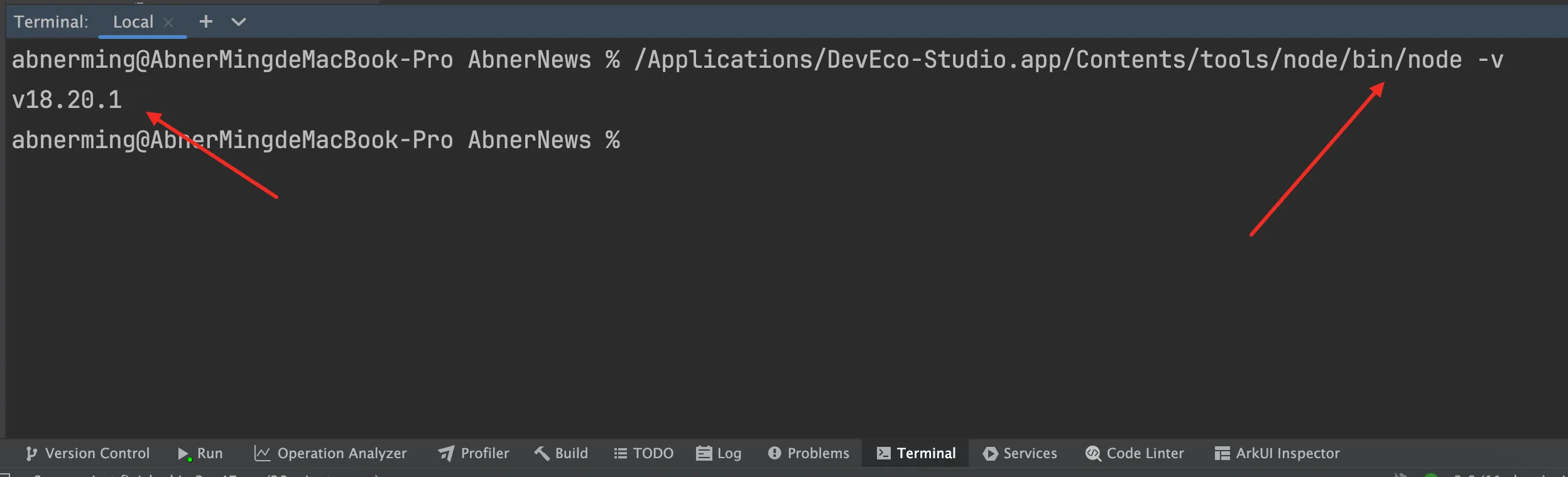 /Applications/DevEco-Studio.app/Contents/tools/node/bin/node可以发现一样可以获取到node版本,只不过是全路径而已。
