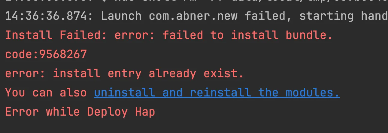 如果设备上已经运行了同等包名的应用,需要卸载原有的,再进行安装,只需要点击控制台的蓝色即可: