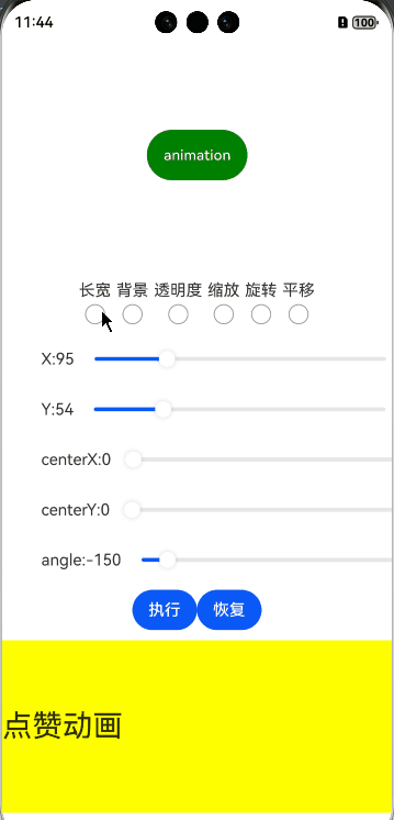 组件的某些通用属性变化时,可以通过属性动画实现渐变过渡效果,提升用户体验。支持的属性包括width、height、backgroundColor、opacity、scale、rotate、translate等。 本文介绍一下以上几个属性各动画的执行效果,并且实现一个简单的点赞功能,看一下演示效果: