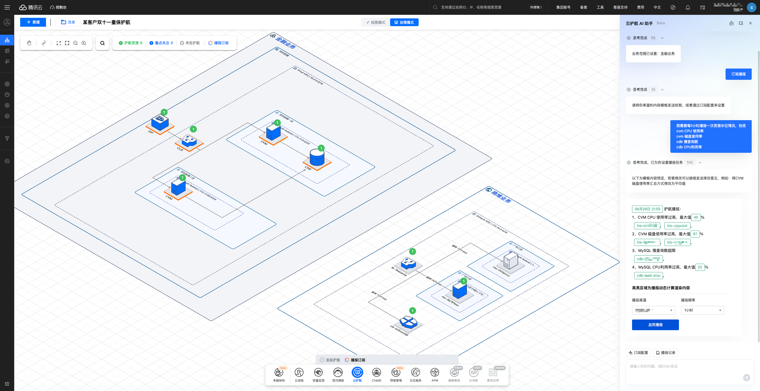 客户云资源订阅播报也是护航中也是非常重要的环节,如在春节重保护航周期内,客户需要按不同频率关注各云产品的指标播报,客户希望及时、准确接收核心服务的播报消息。