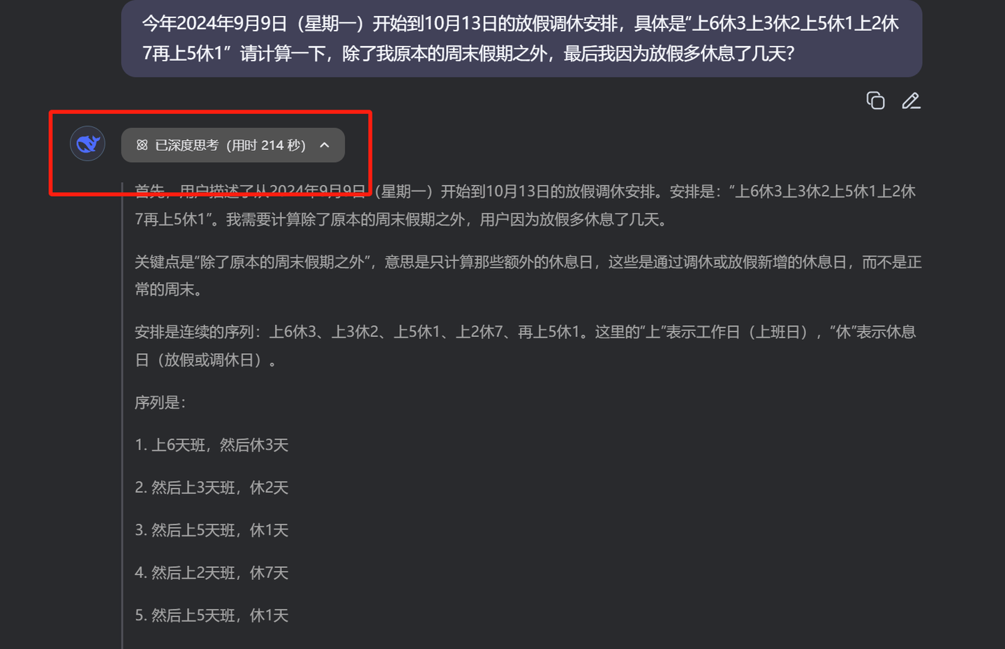从之前的测试来看,很多大模型对于这个问题都给出了错误答案,比如Qwen3它最后给出得答案是多放了7天