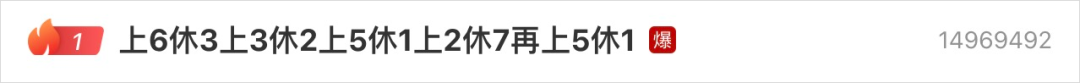 由于上一年之前国庆节和中秋是连着来,所以网友盘算着怎么调休才算最优解,这里的“上6休3上3休2上5休1上2休7再上5休1”其实就是指从中秋开始休假的缩写。
