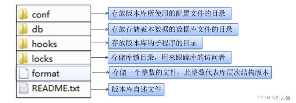 版本库创建成功后会在指定目录下产生如下的目录结构