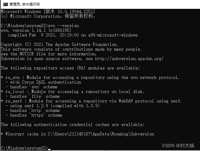 2.Windows下版本控制器(SVN)-验证是否安装成功+配置版本库+启动服务器端程序