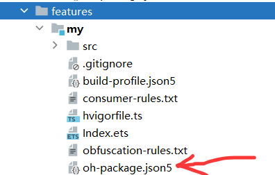 "my": "file:../../features/my"产品定制层导入依赖的完整示例代码如下所示: