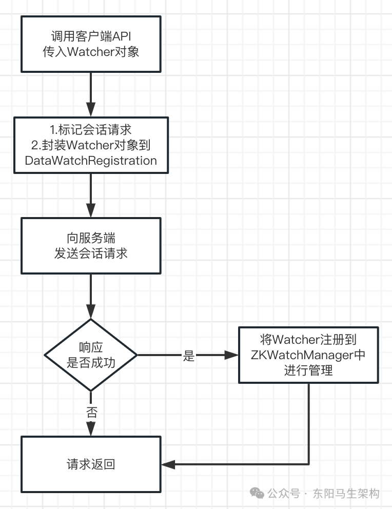 zk的Watcher机制的整个流程:客户端在向zk服务端注册Watcher的同时,会将Watcher对象存储在客户端的WatchManger中。当zk服务端触发Watcher事件后,会向客户端发送通知。客户端线程会从WatchManager中取出对应的Watcher对象来执行回调逻辑。