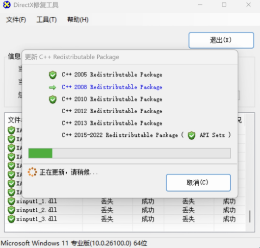 六、更新相关组件(可能会遇到 ) 修复的时候,可能会弹出个窗口,提示更新 C++ Redistributable Package 。这是好事儿,让软件运行环境更完善,耐心等它更新完就行 。